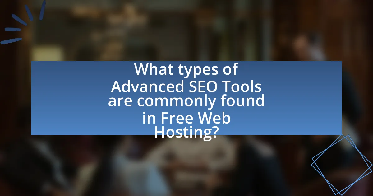Common types of advanced SEO tools found in free web hosting include website analytics, keyword research tools, and on-page optimization features. Website analytics tools, such as Google Analytics integration, allow users to track visitor behavior and traffic sources, providing insights for optimization. Keyword research tools help identify relevant keywords to target, enhancing content strategy. On-page optimization features often include meta tag management and sitemap generation, which assist in improving search engine visibility. These tools are essential for users seeking to enhance their website’s SEO performance without incurring costs.